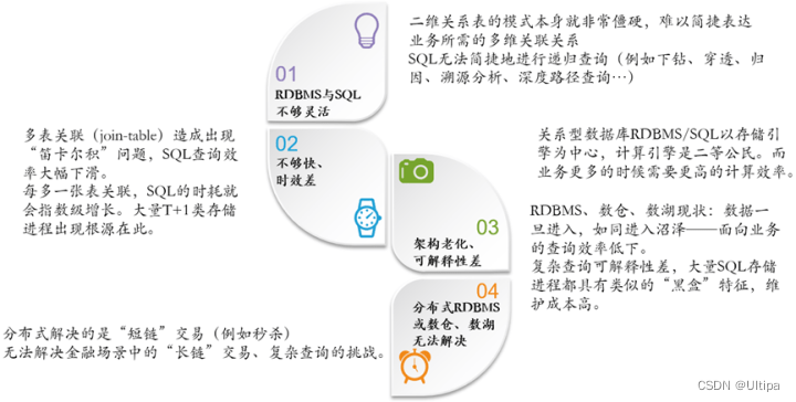 亦如上文所讲,随着数据在量级和复杂级上的表现,“图”在提供强大、灵活且及时的数据洞察力方面成效卓著,且它的出类拔萃还在于零的突破。比如,我们常见的传统数据库能解决7道题,但剩下的3道题涉及到数据中的连接,它无法通过表连接来进行计算,于是就成了其无法破解的哥德巴赫;而这恰恰亦能让我们对“图”产生出强大而独特的理解……