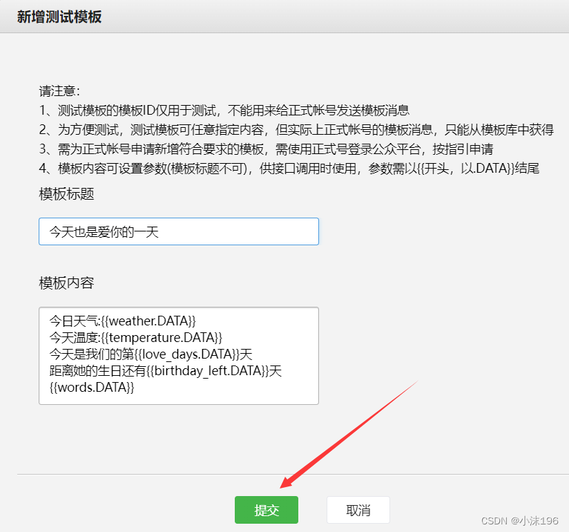 填入如下信息,除了中文,其他都是英文字符,后续要改推送内容的话就改中文部分