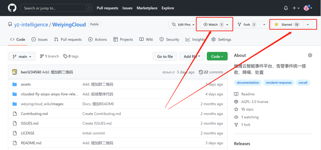 github地址:GitHub - yz-intelligence/WeiyingCloud: 维鹰云智能事件平台,告警事件统一接收、降噪、处置