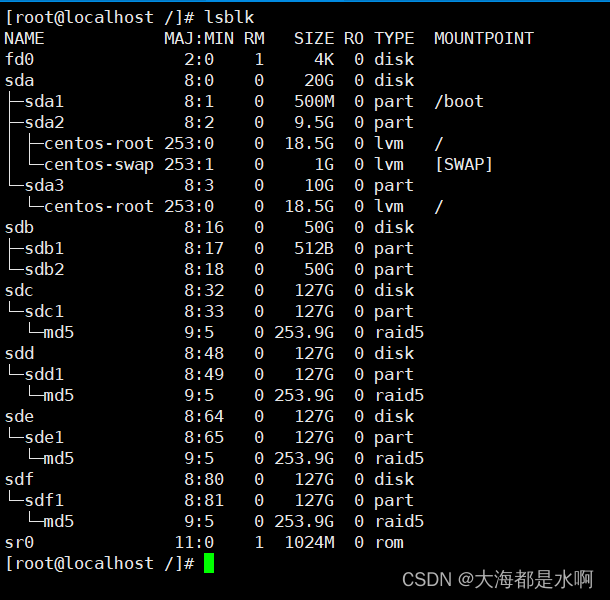 [root@localhost ~]# cat /proc/mdstat #重新看一下