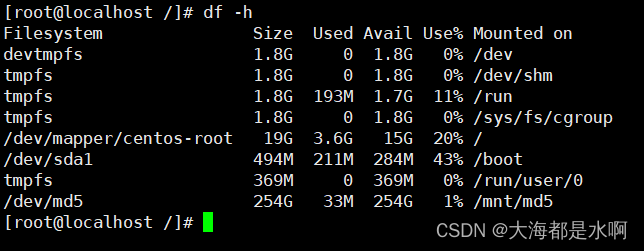 [root@localhost ~]# mount /dev/md5 /mnt/md5/ #挂载目录