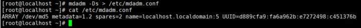 [root@localhost ~]# mdadm -Ds > /etc/mdadm.conf #把查询出来的 RAID 信息写到 mdadm.conf 中