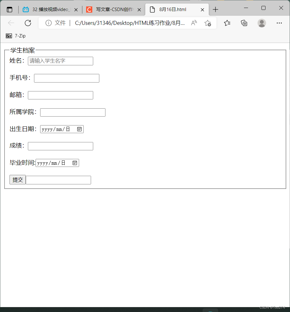 <label>姓名:<input type="text" placeholder="请输入学生名字"/><br /><br /></lebel>
