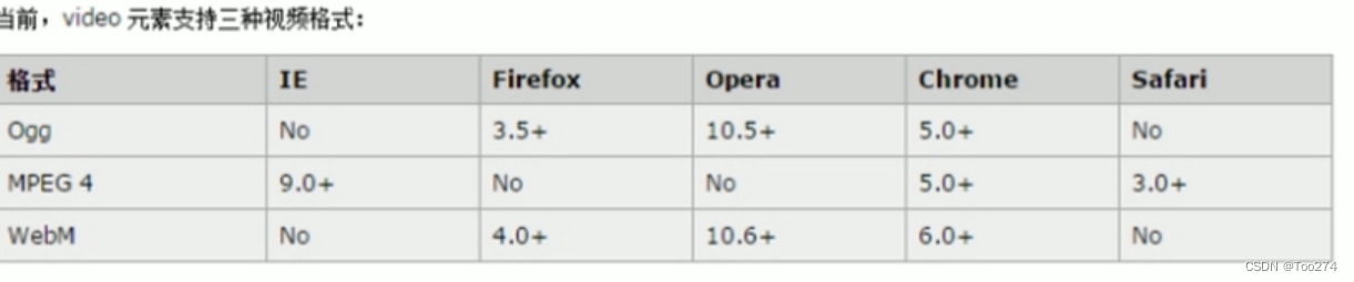 由于版本等原因,不同的浏览器可支持播放的格式是不一样的,如下图共产靠
