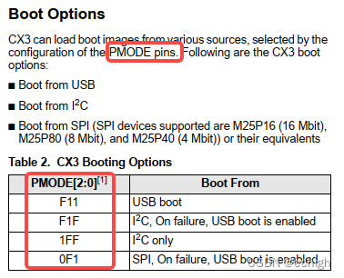2)pmode是一组引脚,和CX3的power mode不是一个概念,power mode如下: