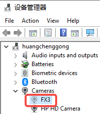 2).另一个是有两个地方都会增加设备,一个是camera,一个是USB,USB那里我们不需要去给它安装驱动,在camera这里安装驱动即可(我这里已经安装好了所以显示CX3):
