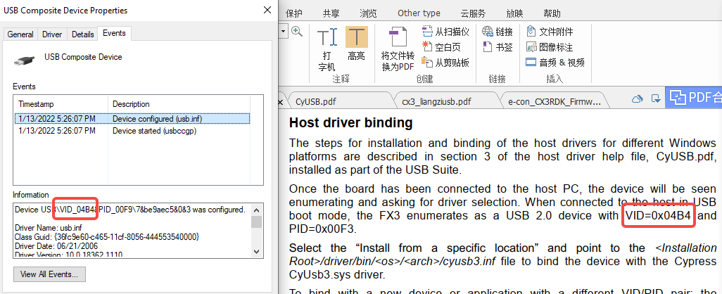 这里我为啥确定那个第三个USB复合设备是新增的呢,看VID和文档GettingStartedWithFX3SDK.pdf中的一样所以可以确定: