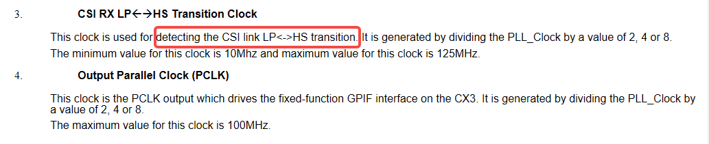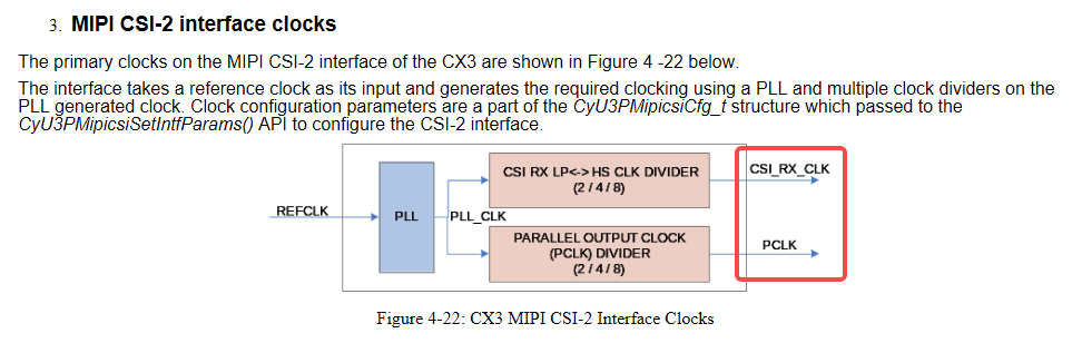这个因为代码里面需要设定所以我顺着AN研究了一下,具体细节这里是我阅读EZ USB Suite看到的,它这个MIPI CSI-2接口时钟是指block里面用的,不是接收数据用的那个RX时钟,见图:
