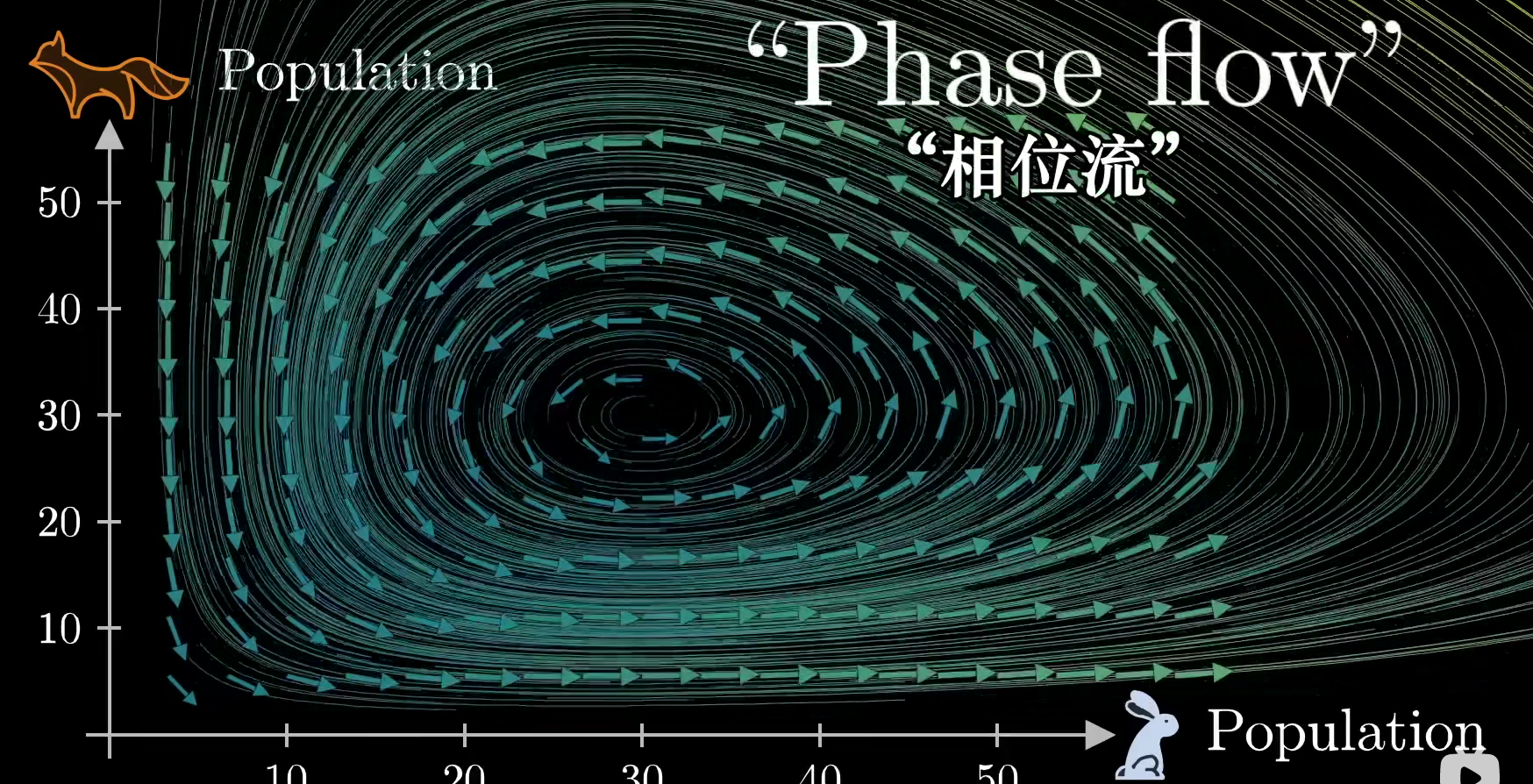 此方法可以让我们知道对于初始状态系统将会如何演化,而散度和旋度可以帮助我们理解这个系统,比如流场收敛于哪些点?发散于哪些点?此例中种群数量会收敛于哪个值?循环在哪里?此循环是否稳定?