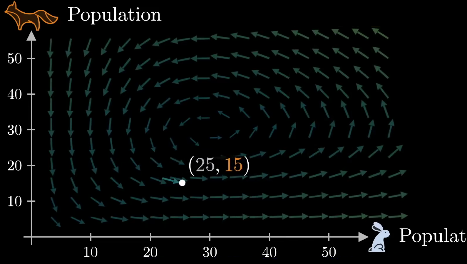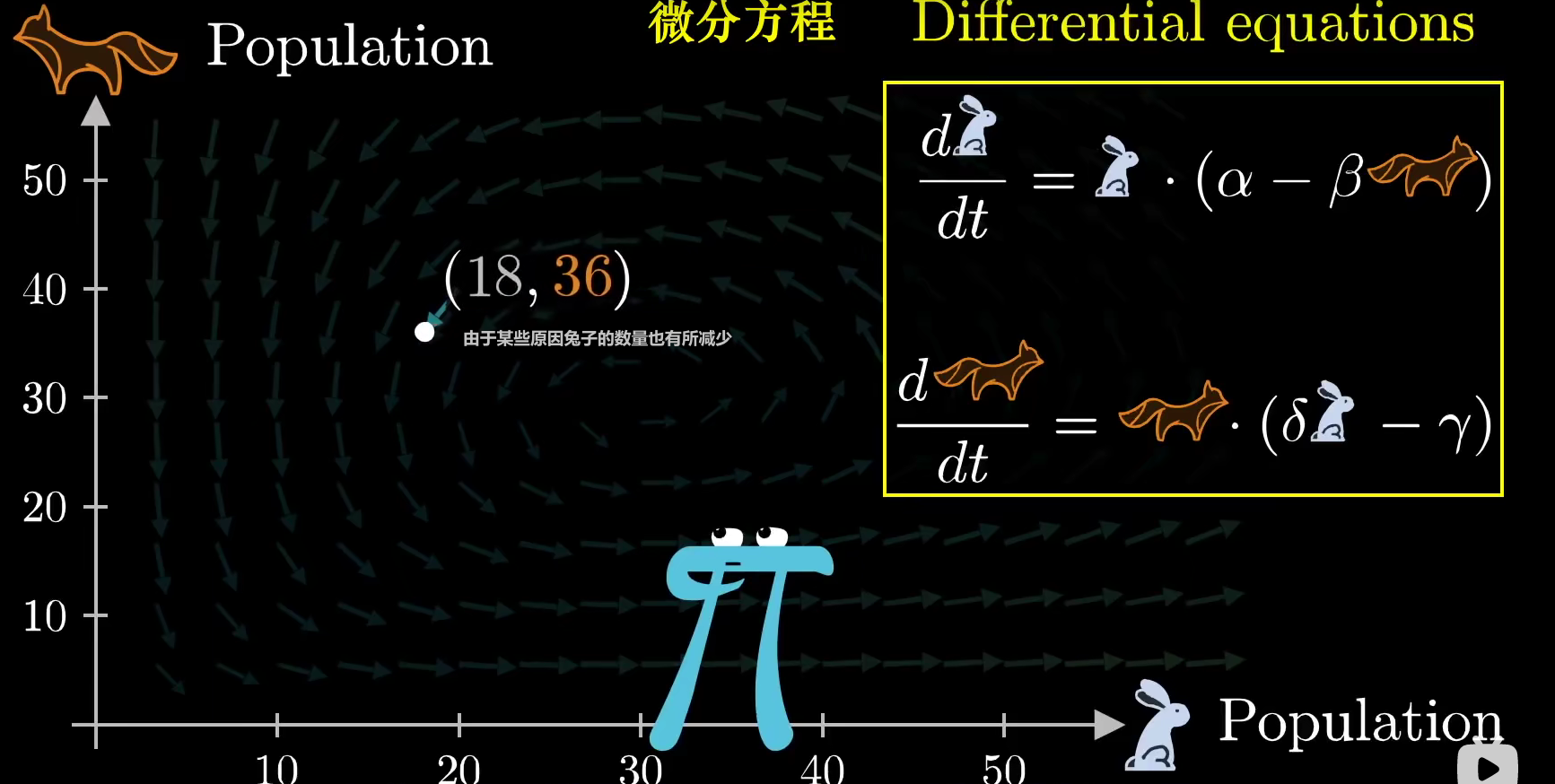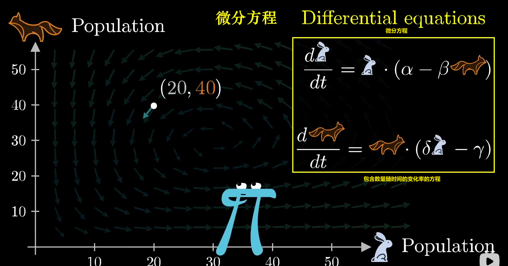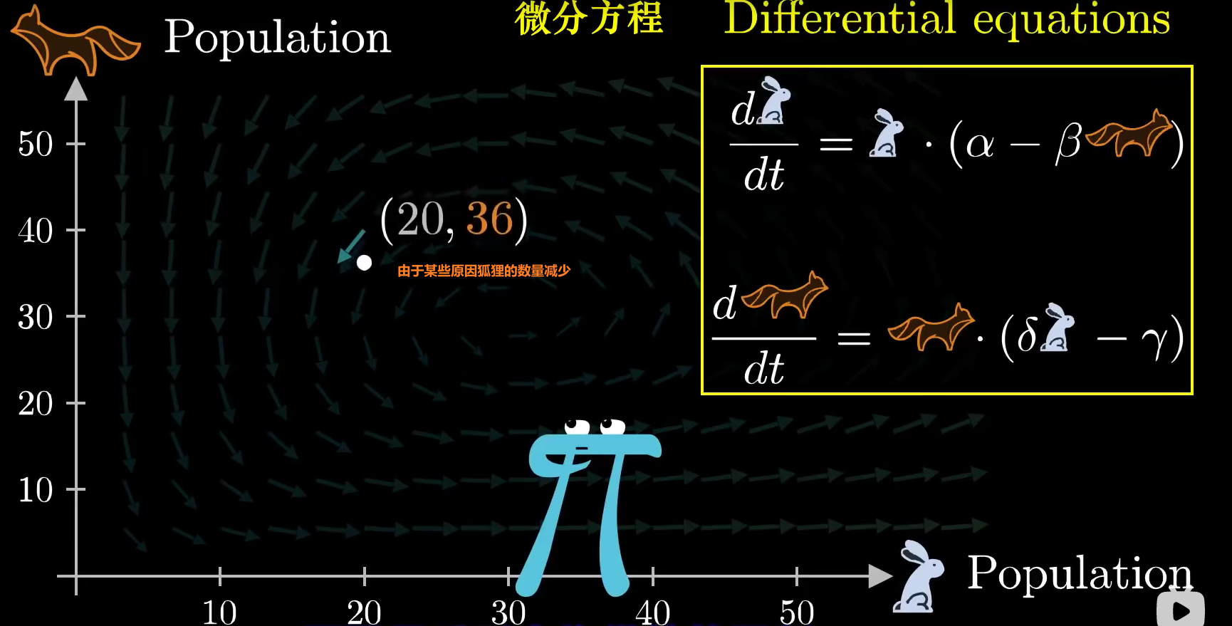 定义在某点的向量可以告诉你一组种群数量将向哪个方向并且以多快的速度变化