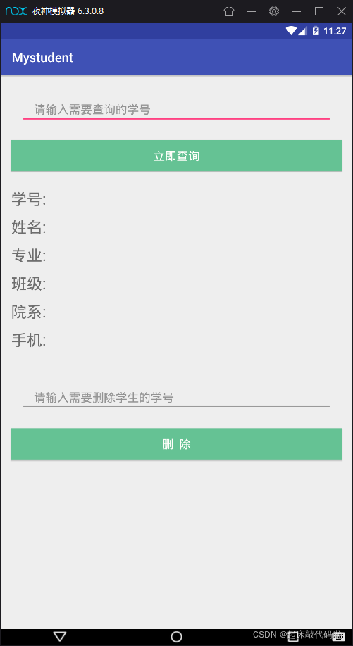 管理员对学生信息按照学号进行删除,输入学生学号后点击“删除”按钮,可实现对学生信息的删除。