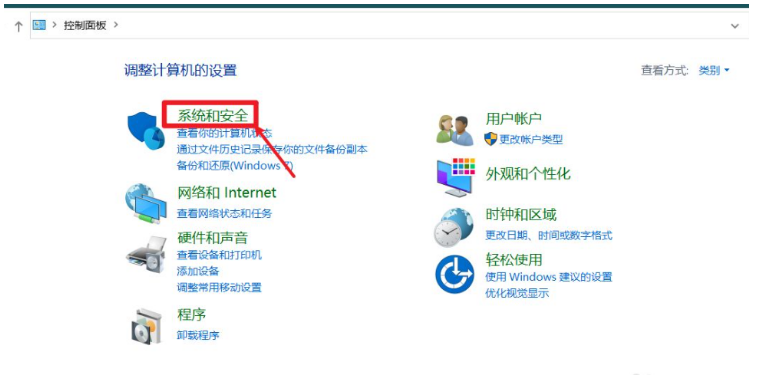 1.首先打开控制面板,点击进入系统和安全选项。