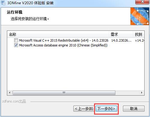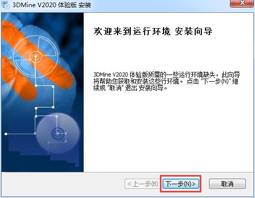 1.运行3DMine2020.03002.exe文件,进入如图界面,首先安装运行环境,单击【下一步】