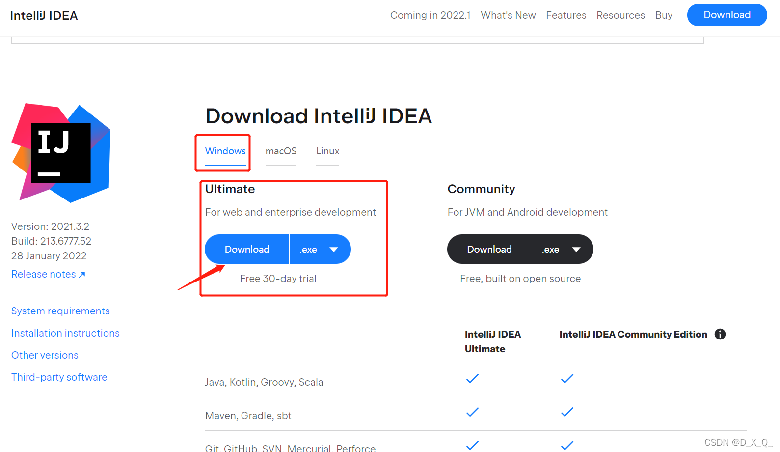 - 根据自己需求下载对应版本,我的电脑是Windows11 64位,所以我下载的是Windows版本,我主要用于Web开发,所以下载的是UItimate版本,点击Download下载。