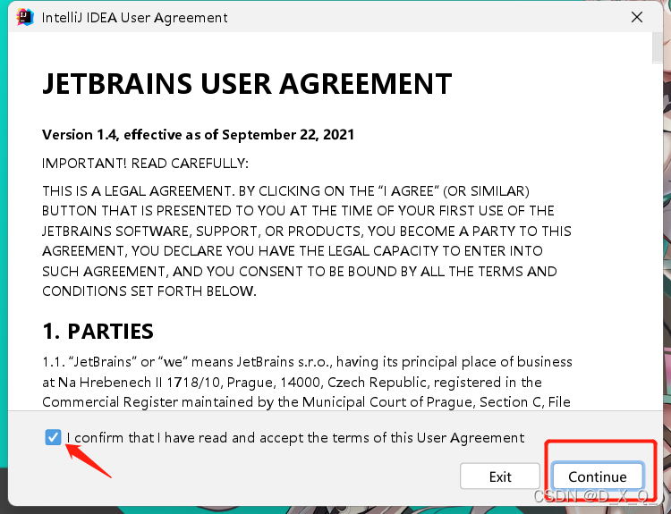 - 勾选“我确认已阅读并接受本用户协议条款”,点击Continue