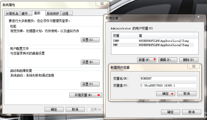 - 变量值:C:\ WINDDK \ 7600.16385.1