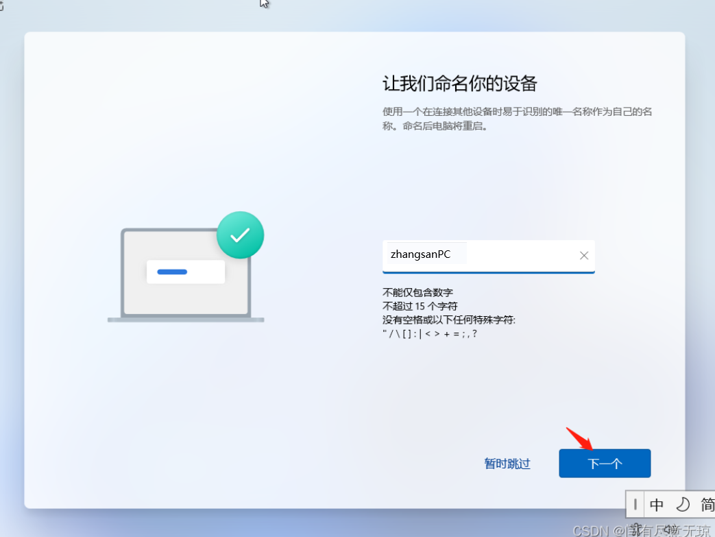 18、设备名称,这是局域网或者路由器等网络设备中你的电脑名称,建议名字拼音加PC,比如张三,应该输入zhangsanPC