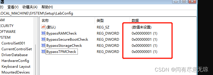 BypassTPMCheck、BypassSecureBootCheck、BypassRAMCheck、BypassStorageCheck