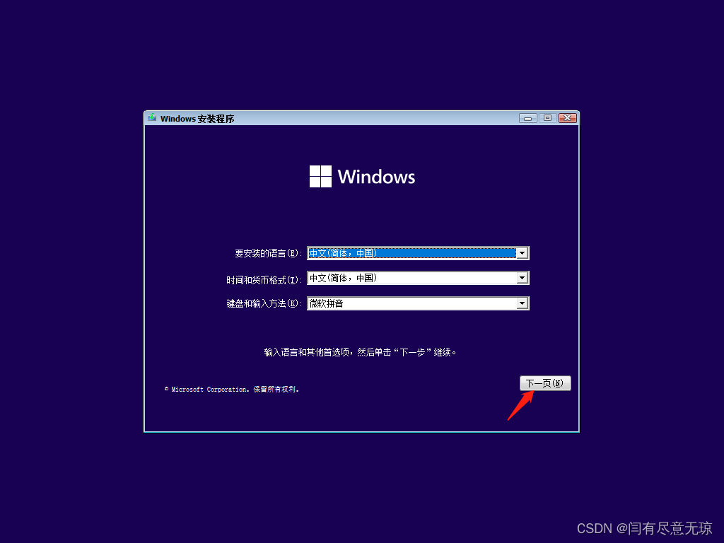 1、到下图安装界面后,无需任何操作,直接点下一页;