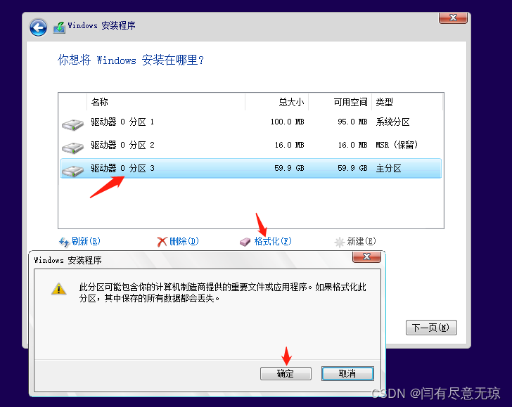 警告:此处务必选择旧的C盘,再格式化,选择错误会导致旧数据被格式化。