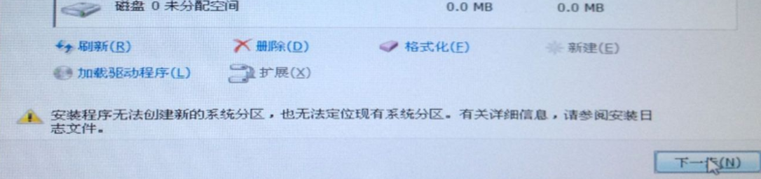 问题二: 重装提示系统安装无法创建新的系统分区