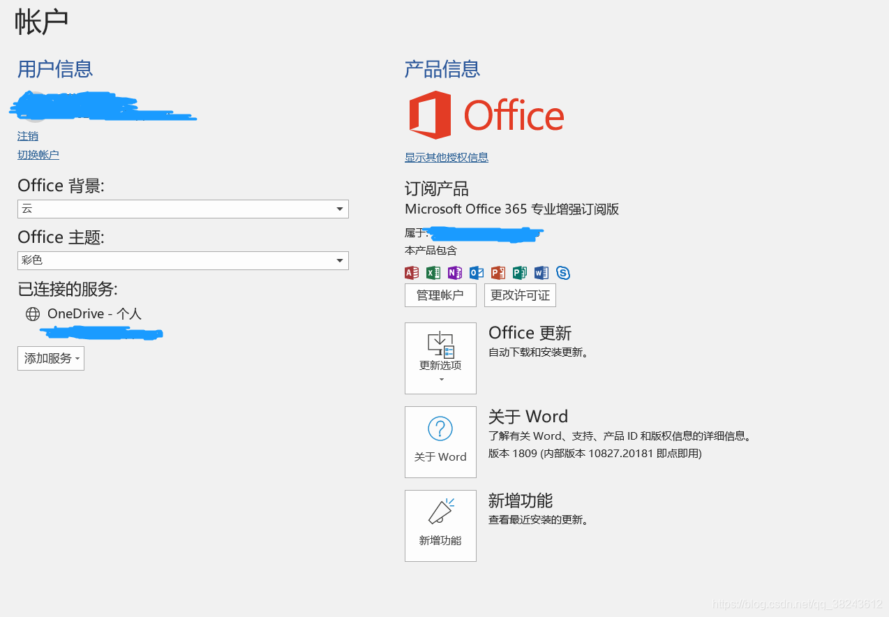 1、打开word->文件->账户,检查是否登录,没登录微软账号的登录