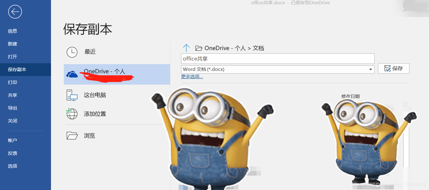 Office本地保存(之前文件会存在onedrive里):最后在文档完成后,打开文档,文件->保存副本->这台电脑->浏览->本地文件位置(或者文件->保存副本->浏览->本地文件位置)选一个你的本地文件目录(最后的成品保存到本地,如:我的电脑)