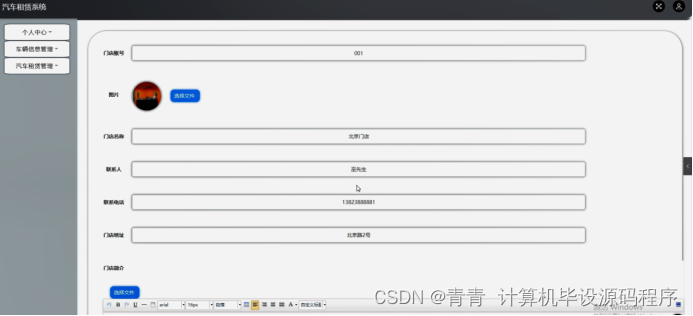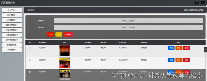 门店登录进入系统可以对主页,个人中心,车辆信息管理,汽车租赁管理等功能进行详细操作,如图5-16所示。