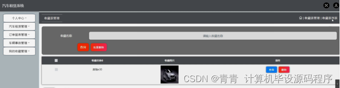 该部分内容提供用户注册,用户资料修改,汽车租赁管理,订单留言管理,车辆事故管理,我的收藏管理等等功能。