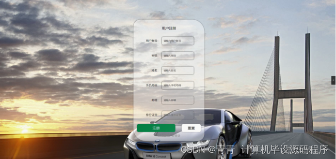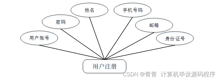 用户注册,在用户注册页面通过填写用户账号,密码,姓名,手机号码,邮箱,身份证号等信息完成用户注册操作,如图5-2所示。