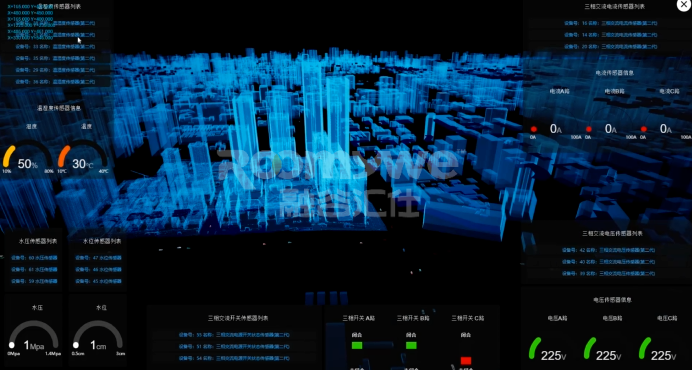 支持对厂区各类设备、设施进行三维建模,真实复现设备设施外观、结构、运转详情;支持集成视频监控、设备运行监测以及其他前端传感器实时上传的监测数据,对各类设施具体位置、类型、运行环境、运行状态进行监控,可实时查看设施的详细资料、修缮记录、视频监控画面等信息,支持设备运行异常(故障、短路冲击、过载、过温等)实时告警,辅助管理者直观掌握设备运行状态,及时发现设备故障问题、及时进行设施抢修,最快时间恢复生产。