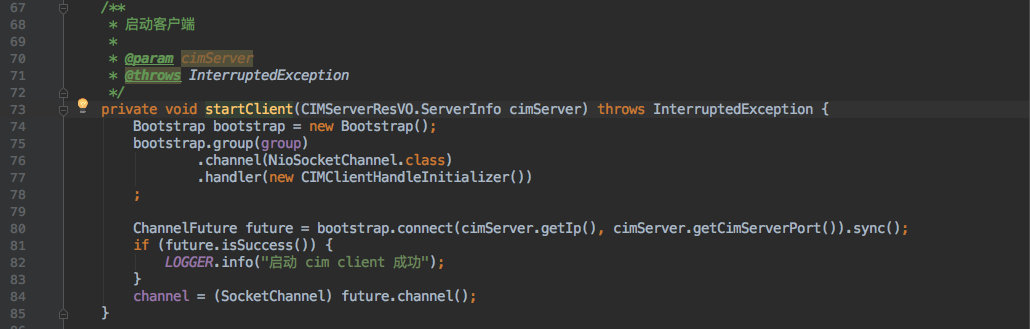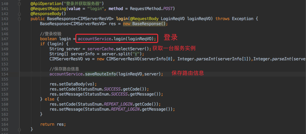 第一步也就是登录,需要在启动时调用 route 的登录接口,获得 cim-server 信息再创建连接。