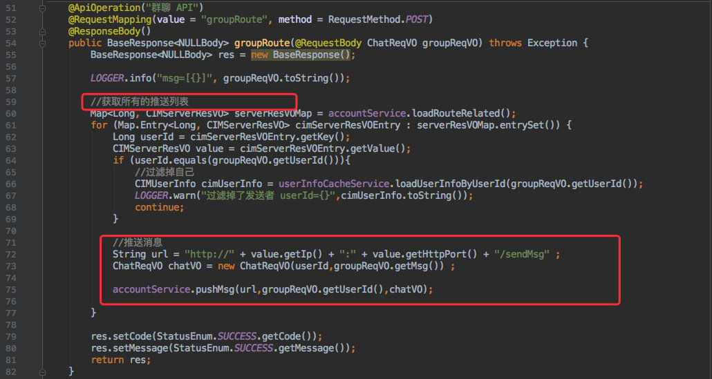 这时会去调用 route 的群聊接口。
