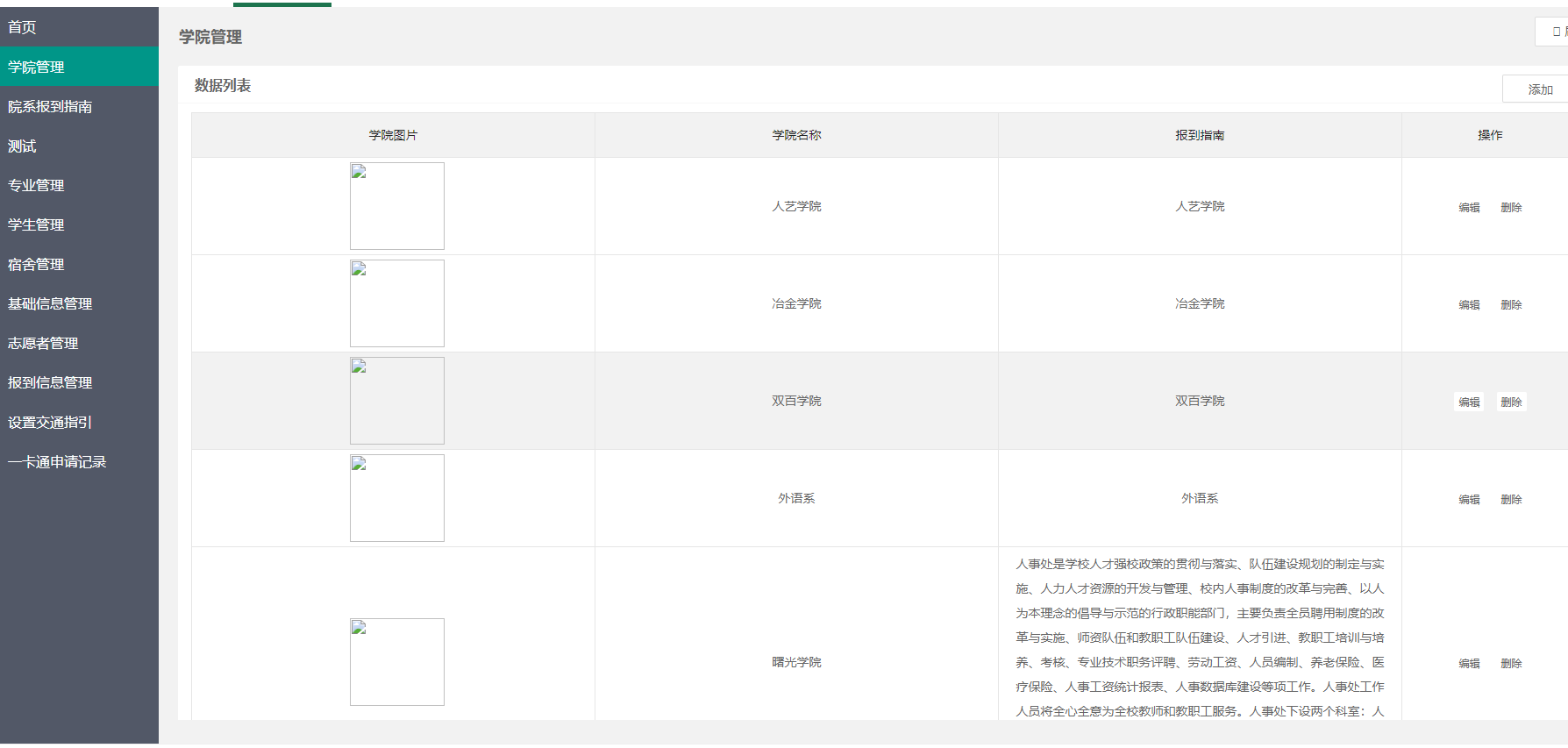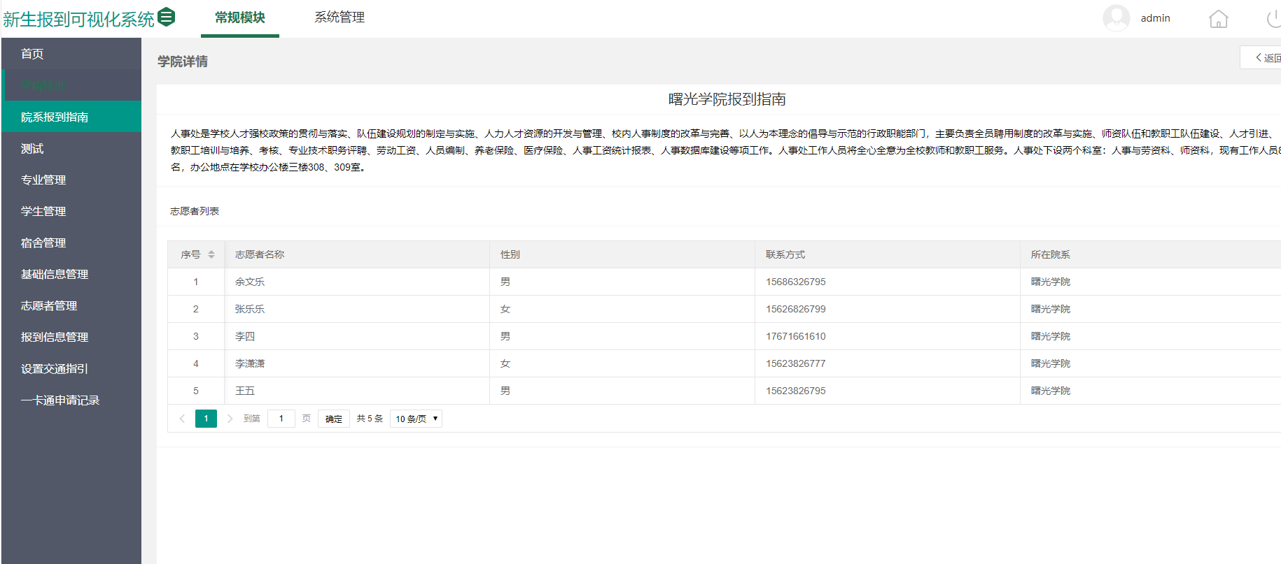 3)志愿者信息:管理员发布各院部志愿者信息。
