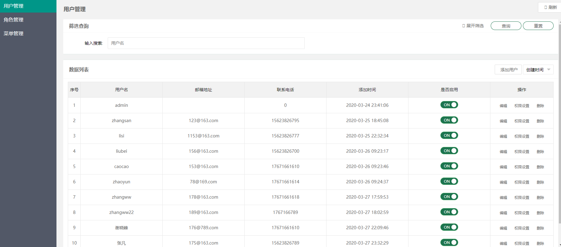 (3)后台数据可以快速检索。进行查询、增加、删除、修改、统计等操作。