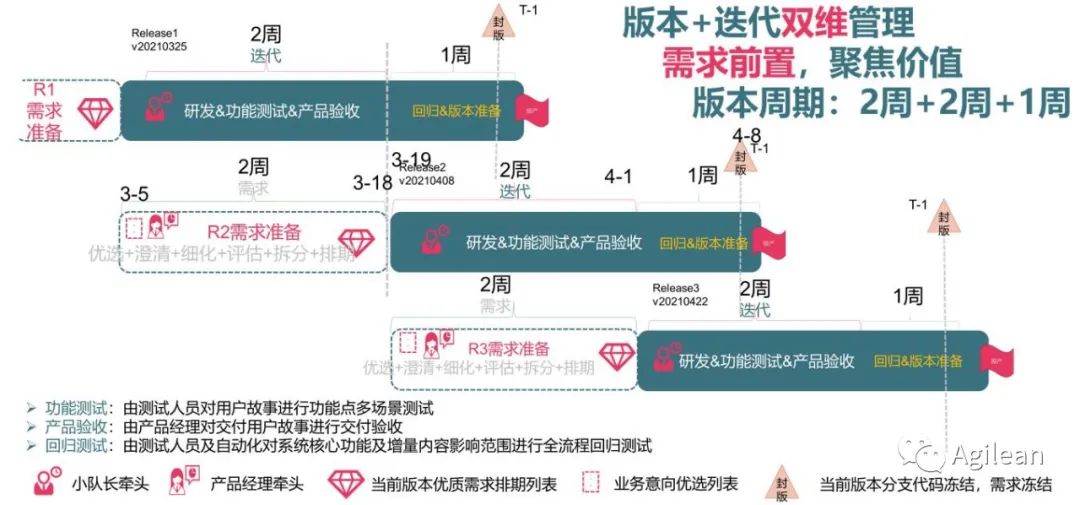 值得注意的是,我们一直在强调“在制品控制”,即同一时刻,并行的需求数不能过多,优先聚焦业务价值更高的需求,实现MVP“最小可行性产品”交付原则。