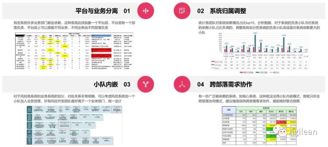 对部落和人员结构进行调整,减少过程沟通成本,让业务和技术人员更为聚焦。考虑系统复杂度,科技侧也将从需求颗粒度、业务系统架构等方面,配合优化跨系统研发。