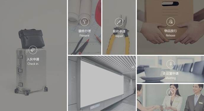 园区的在线物业办事的平台,物业即时响应企业需求,提高服务质量及企业满意度。通过构建标准化的服务与管理平台,拓展了传统物业管理服务的界限,由对物的管理延展至物业所有人/使用人的服务,为园区住户提供除基础物业管理服务外的增值服务以创造商业价值。
