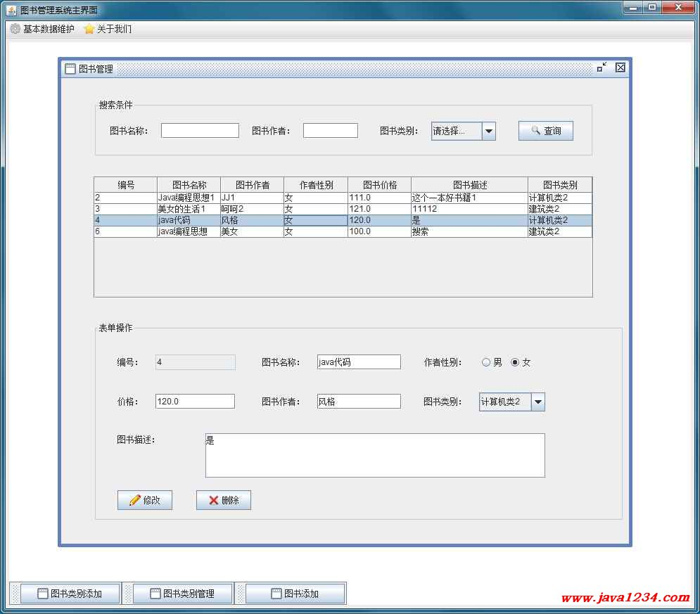 图书表单操作页面:
