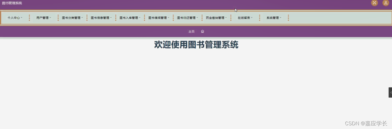 系统主要包括主页、个人中心、用户管理、图书分类管理、图书信息管理、图书入库管理、图书借阅管理、图书归还管理、罚金缴纳管理、在线留言、系统管理等功能。
