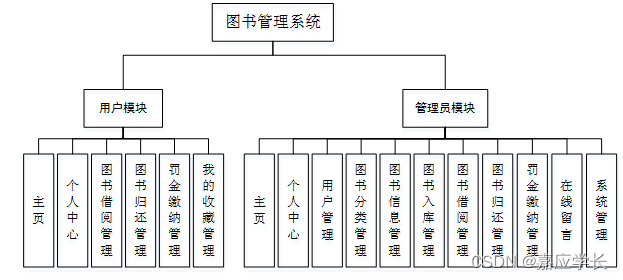 通过市场调研及咨询研究,了解了使用者及管理者的使用需求,于是制定了管理员和用户等模块。其功能结构图如下图4-1所示: