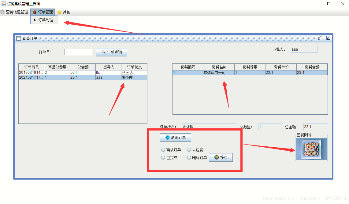 管理员端: 套餐信息维护、查询、修改和删除操作、订单信息查询、修改流程状态、修改密码等