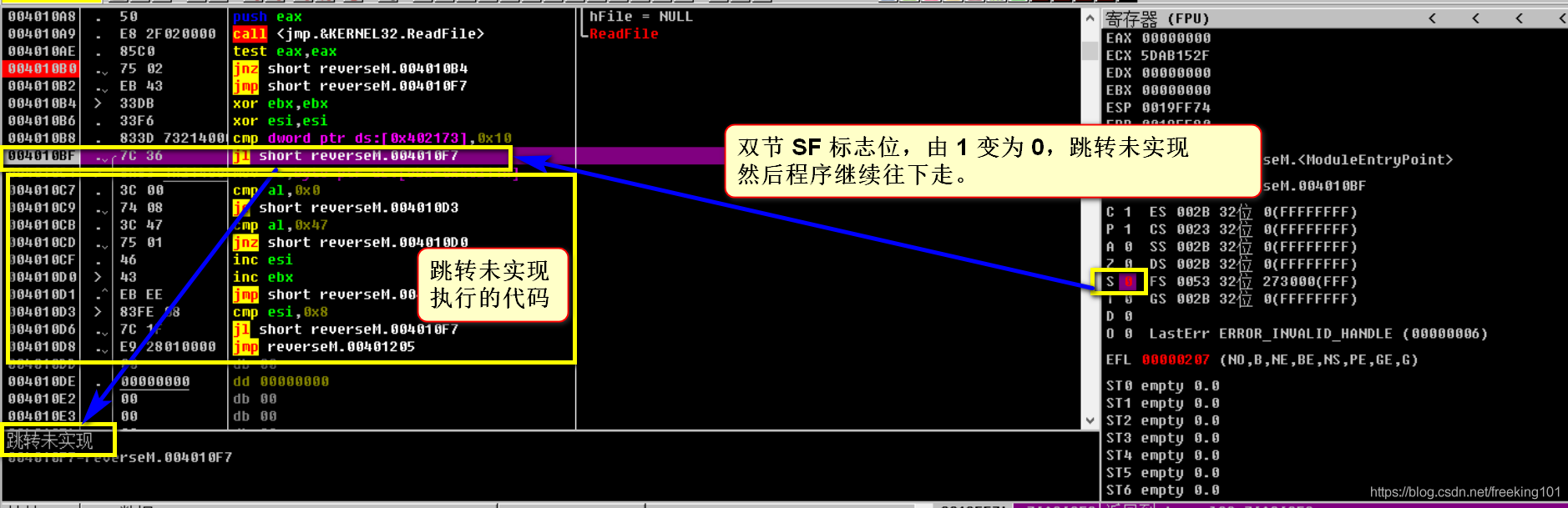 让SF!=OF的值相等就行,那在这里修改S的值,让S=1变为S=0就可以达到所要的效果。