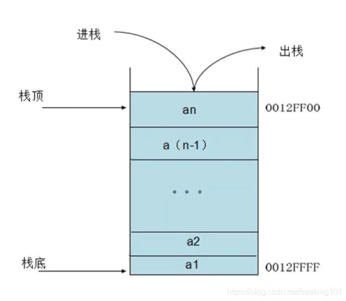 2. 栈:栈是在内存中的一部分,它有两个特殊的性质: