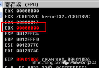 ebx 的值等于 0 的话可以看看寄存器上的 ebx 的值。
