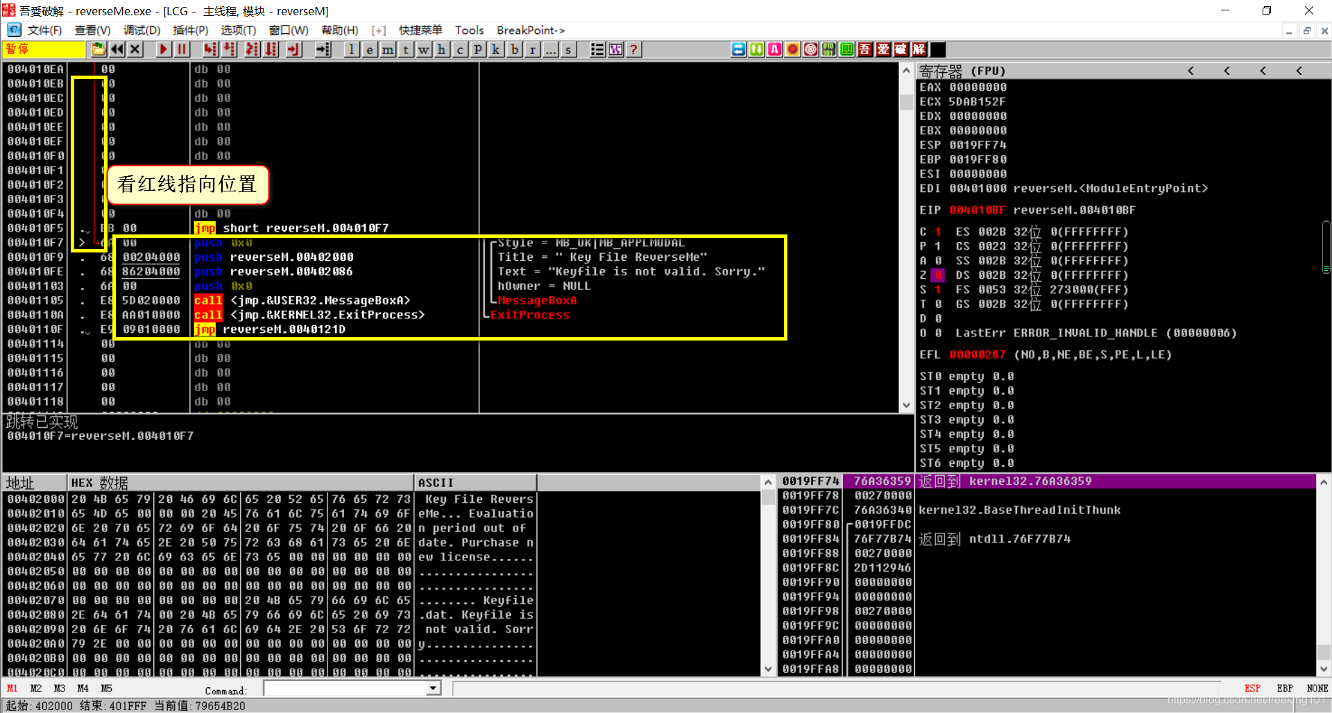 接下来,我们继续走我们的程序,走到jmp是无条件跳转,就让他跳吧。