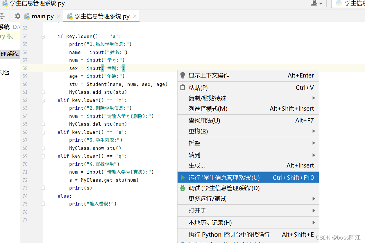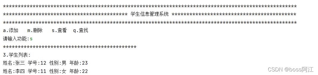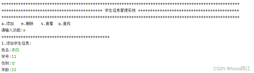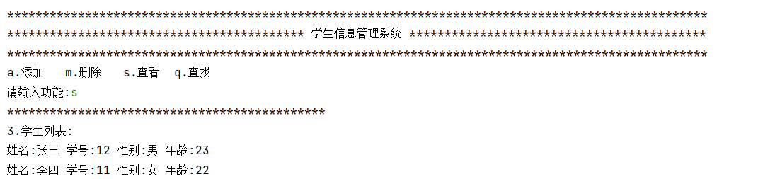 目的:编写一个简易的学生信息管理系统,要求能实现 学生信息的添加、删除、特定学生信息查询、所有学生信息展示等基本功能