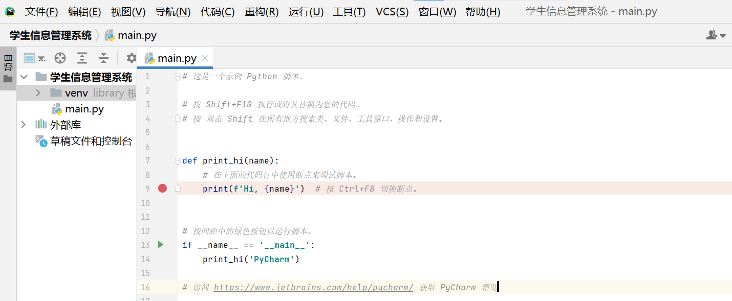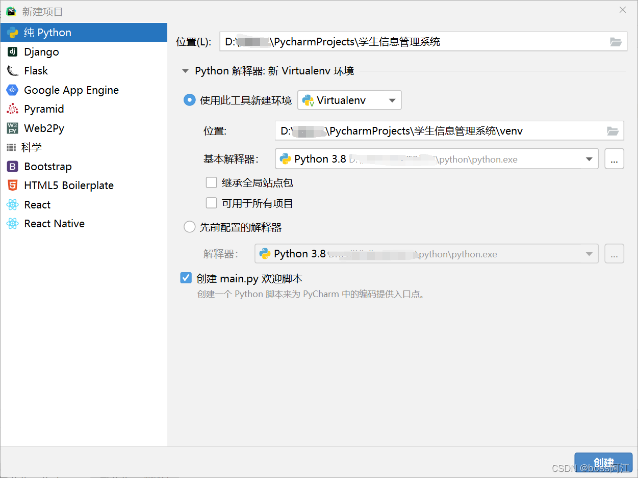 1.2 输入项目名:学生信息管理系统 ————>执行