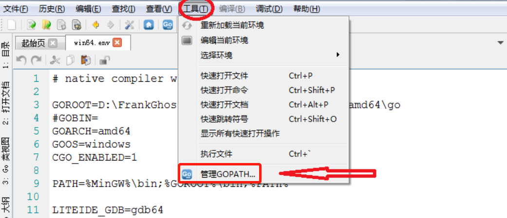 打开我圈出的工具,选择编辑当前环境,会出现一个文件