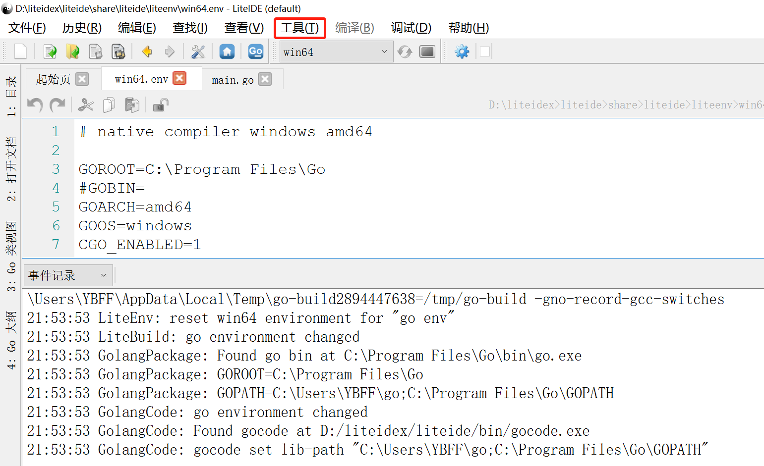 配置完成以后,下载编辑器,我们老师推荐的是liteide编辑器